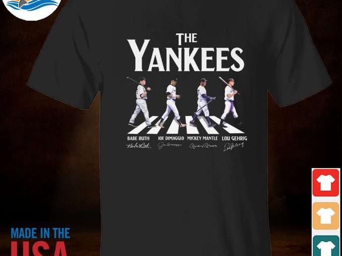 Buy this shirt: https://wavetshirt.com/product/the-new-york-yankees-abbey-road-babe-ruth-joe-dimaggio-signature-2023-shirt/ “Dame...